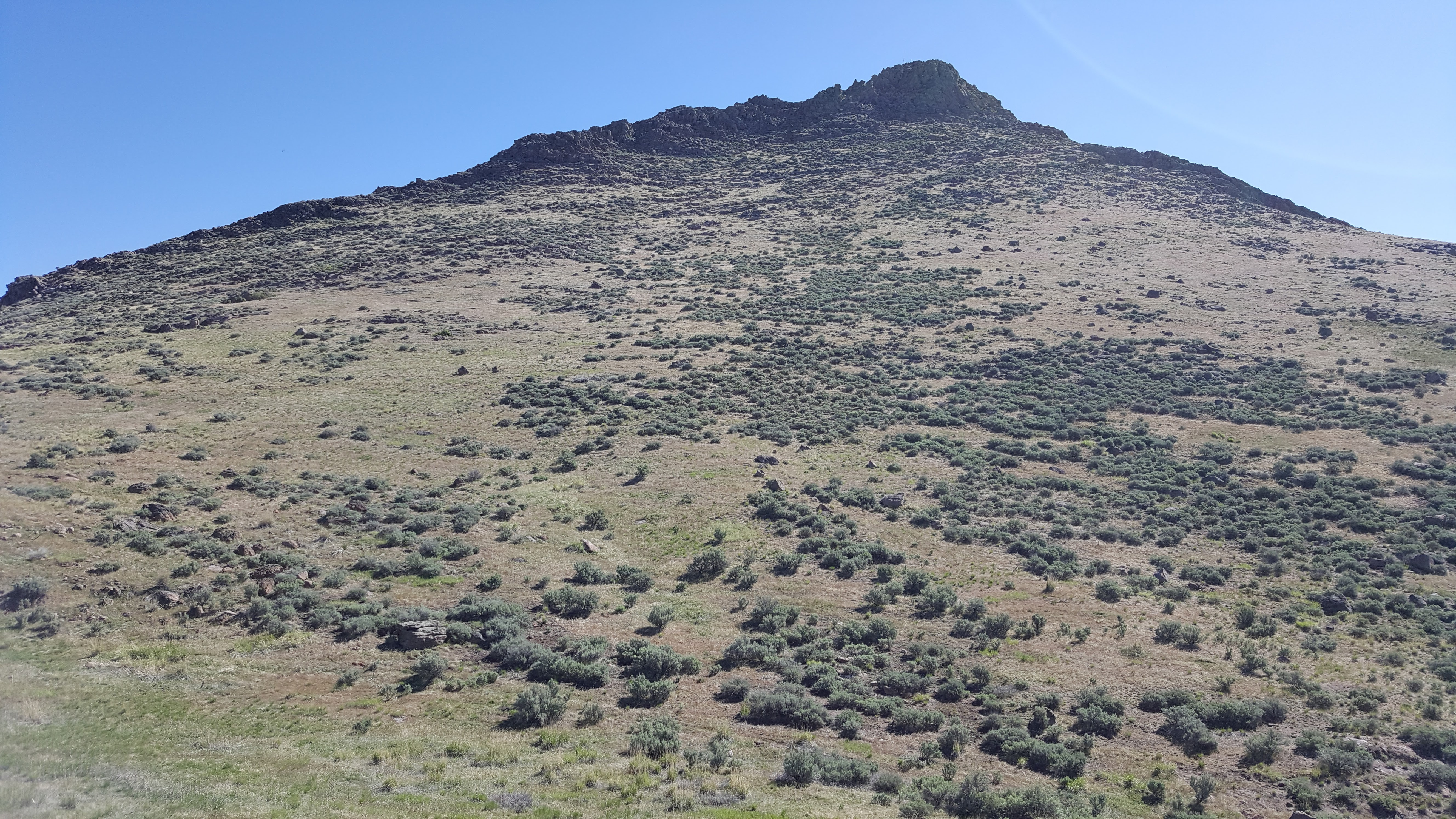 Wedge Butte is along the highway between Shoshone and Hailey. It's 5,607 feet high. It's interesting (to me anyway) because of the way it looks from further away and the fact that you can't miss it when driving north. It also just stands by itself out in a plain. It was a pretty quick hour or so hike up and down but worth the trip. Now at least when I pass by it I can say I was at the top. Nice view from the top as well as it was a clear morning.