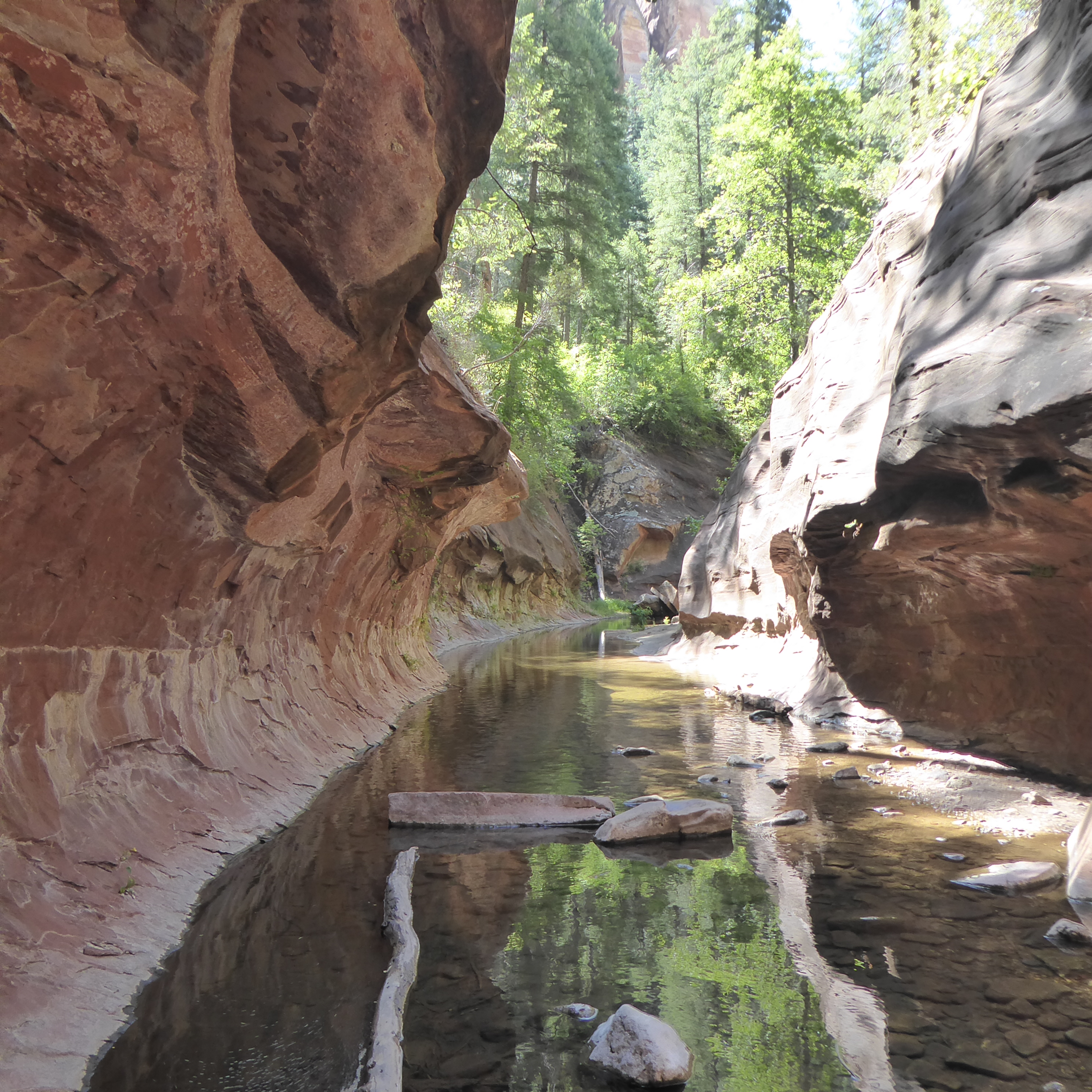 Specifically the West Fork of the Oak Creek canyon, which is located a little above Sedona, AZ. This trail is fairly popular. It's far enough out of the desert to be not boiling hot and dead. There was shade and the trail was very good the whole way in. The official maintained trail goes in about 3.3 miles, but the trail does continue on for another 11 or so for those who want to hike further (my GPS clocked just over 7 miles though). I decided to just go the 6.6. The trail basically follows the Oak Creek river through the canyon, so there wasn't really many pictures of much other than the trail, the river, and the canyon walls. The hike was nice though, and anybody in the Sedona area should do it at least once. I originally wanted to do Humphreys Peak in AZ while I was here but the trail is closed because of a fire restriction.