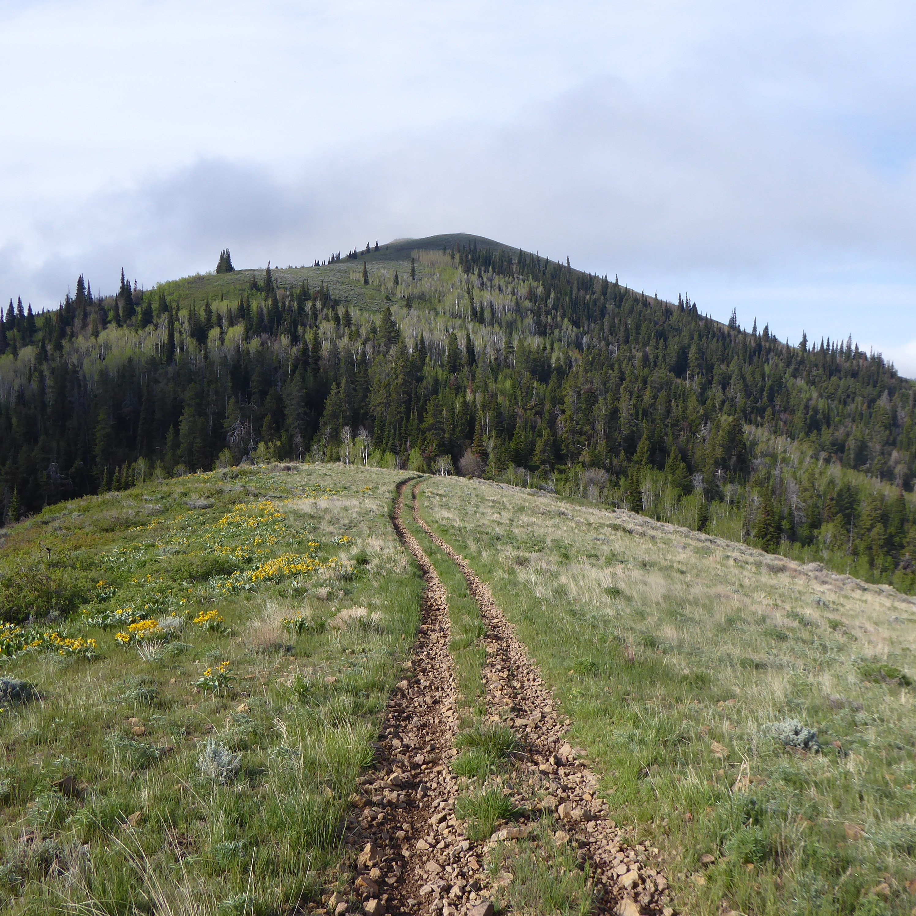 Pike Mountain is to the south of Twin Falls and right across from the Magic Mountain ski resort. I haven't hiked down south yet other than around Indian Springs, so this was new for me. The area down there in that particular spot was great, lots of trees and good trails made mostly for ATV's and motorcycles I think. I took a loop from a parking spot down the mountain off the road up to the top and then over to Elk Butte and back to the car. Round trip was just under 6.5 miles. You can take a car up to the top of Pike and can see Harrison and Cache from there. The beginning of the trail has some pretty thick forest area and was kind of creepy for me after having been in the wide open Boise hills for so long this year. Very nice hike though and I'll be going back to that area again soon. Pike Mountain is 7,698 feet high.