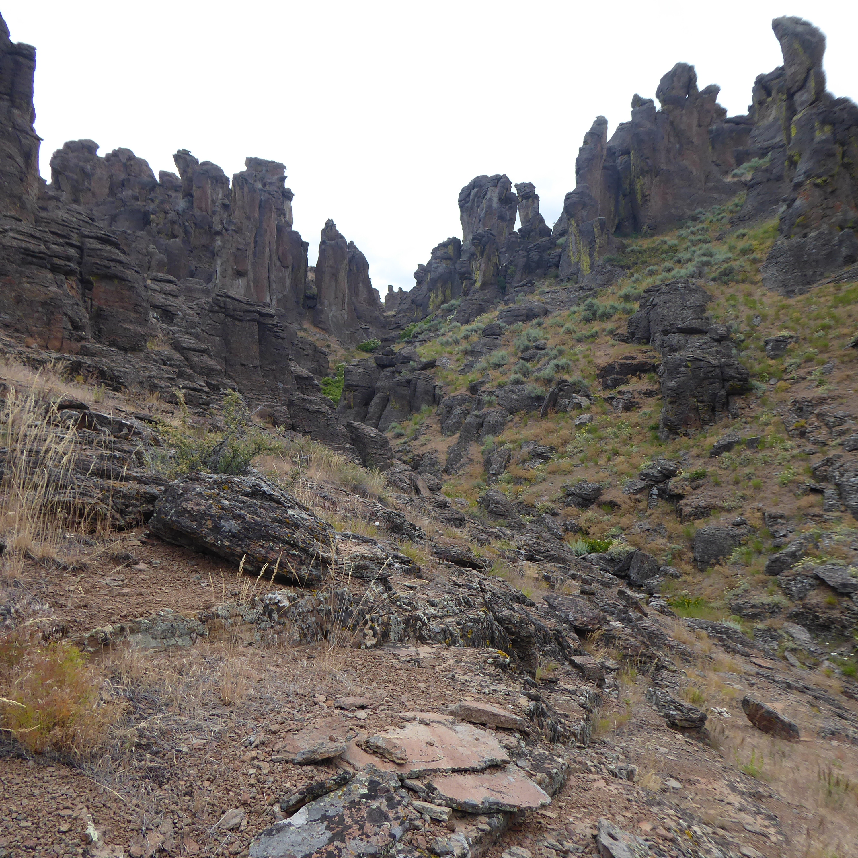 In the places with "Rocks" in the name this has been the least interesting, although not too far behind the "Little City of Rocks" which is just to the West. The other two are of course "City of Rocks" and "Castle Rocks". Unlike the latter two, the others do not have rock climbing, they just have lots of big rocks and canyons with hoodoo type formations. There was a trail starting out but only for about a third of the way. Once you drop down into the canyon it's all off-trail until you get back to wherever you are going. I went about 3.5 miles, but you can go shorter or longer depending on how long you want to follow the canyons and the trip back. If you are spending a day in the area and were planning on going to the Little City of Rocks, this one is worth seeing as well. If you don't care for one, you won't care for the other. There is a fairly long dirt road to get to the spot to park. It's probably good enough to be done in a car if you are careful in a few areas, but I did not do it in a car, so you have been warned.