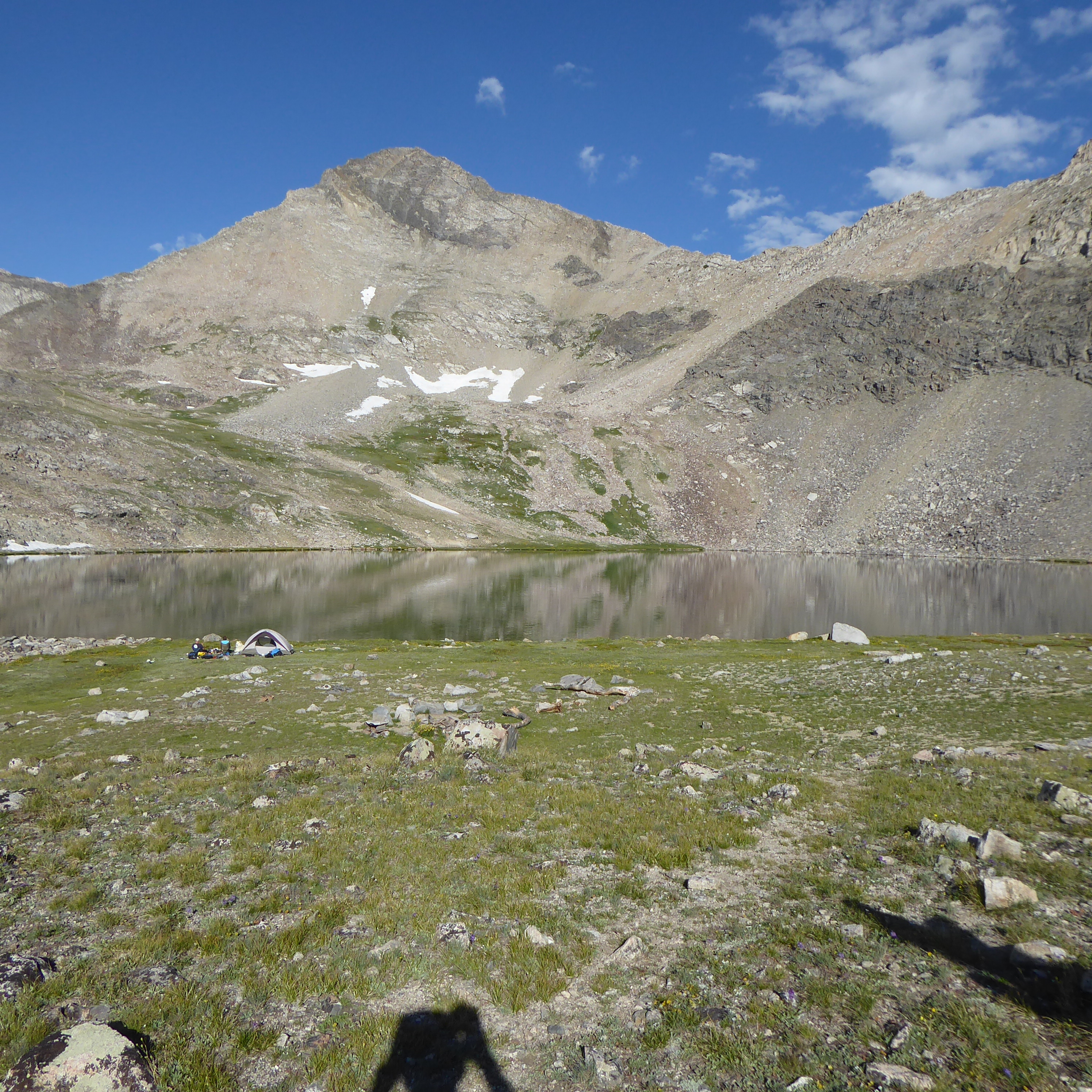 Standhope Peak is 11,877 in the Pioneers. The trail to get to it is actually not bad and you can hike it in a loop from the trailhead. The trails are named Broad Canyon and Jarvis. I went up Jarvis and down Broad Canyon. Not sure I can say which one is worse going up the canyon. Either way you will get to Standhope and the lakes just below it. Most people I think just do the loop or stay the night at the lakes, I don't think people go there to climb Standhope or the other 11er to the northeast, Altair. Getting up Standhope actually wasn't bad. I'd rate it between Hyndman and Leatherman (from the way I did it). Class 3 but not difficult. The area is pretty nice though, lots of camping in the canyons all around that area and lots of trails to hike on. It is a ways away though but the roads are ok for cars. All in all it was a nice hike and really nice views. From the top of Standhope you can see Borah, Leatherman and that range to the northeast, and Hyndman, Old Hyndman, and the rest of the Pioneers to the West.