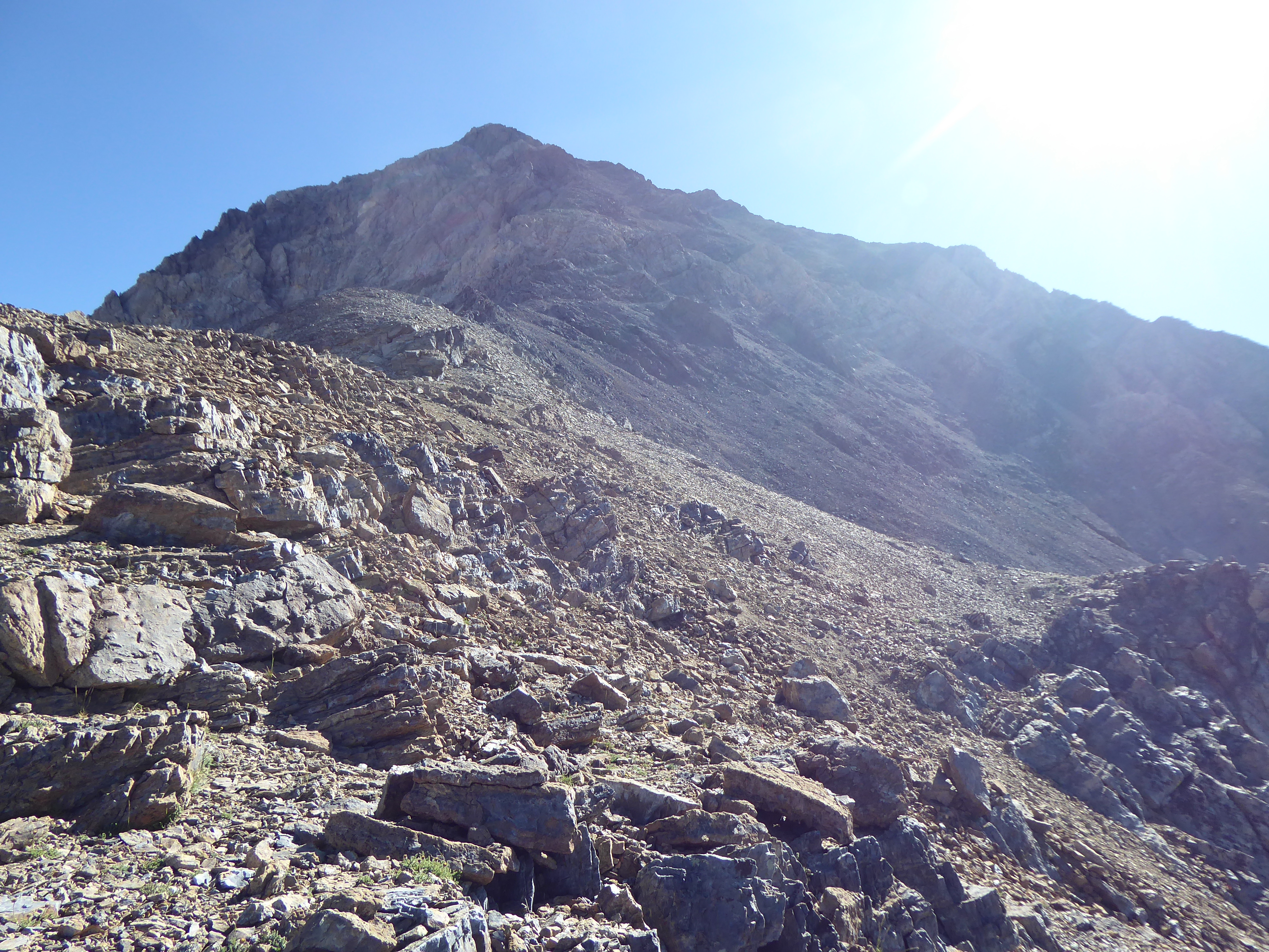 The approach to this peak was not that long but fairly steep in a few places. The actual climb up the mountain was a lot like Leatherman. Apparently once you get high enough, there is a gully I've heard called the 'stairway to seven' which you take to the top. I went past it a little and up a slightly more sketchy gully, but still no real big deal. I guess as long as you make it up then you were going the right way. I did take that gully on the way down. It took around 5 hours to get to the top and just under 2.5 to get back down. You are able to drop down from the top very quickly. Most of the lower part of the trail is pretty good, towards the middle you lose it or there is none, and the top is also fairly well marked for the kind of stuff you are walking and climbing on.