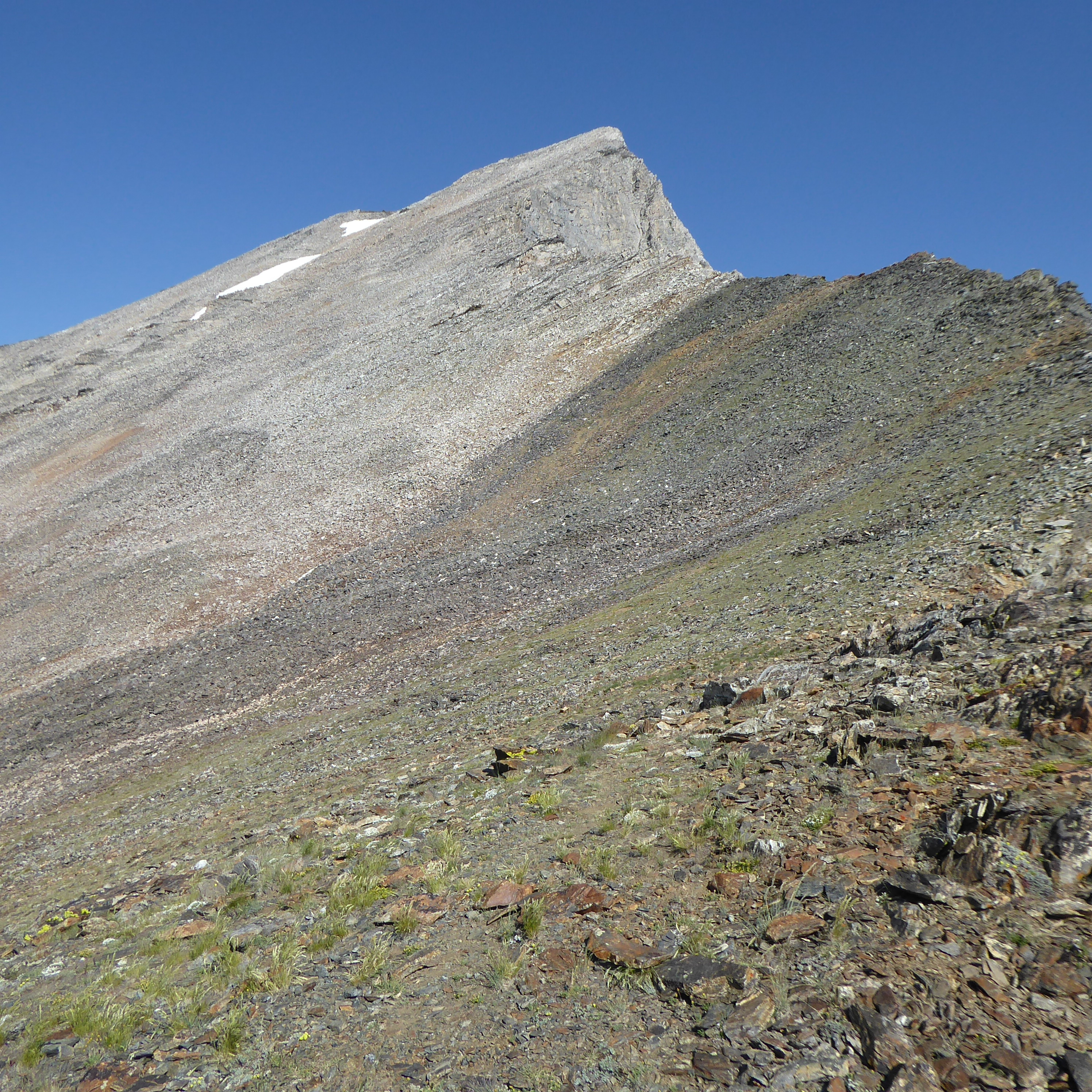 I attempted this one last year but turned around on the actual mountain because of snow and some bad looking clouds. I had also started late because I had done another hike before going to this one (that TR is here). Turned out I probably made the right decision as the last part would have taken a few more hours which I would not have been prepared for. From the saddle between Hyndman and Old Hyndman there basically is no trail, or at least none I saw, which means slow going the whole way up going over good sized loose rocks. Some parts were ok where the were bigger, more stable rocks but pretty slow going.