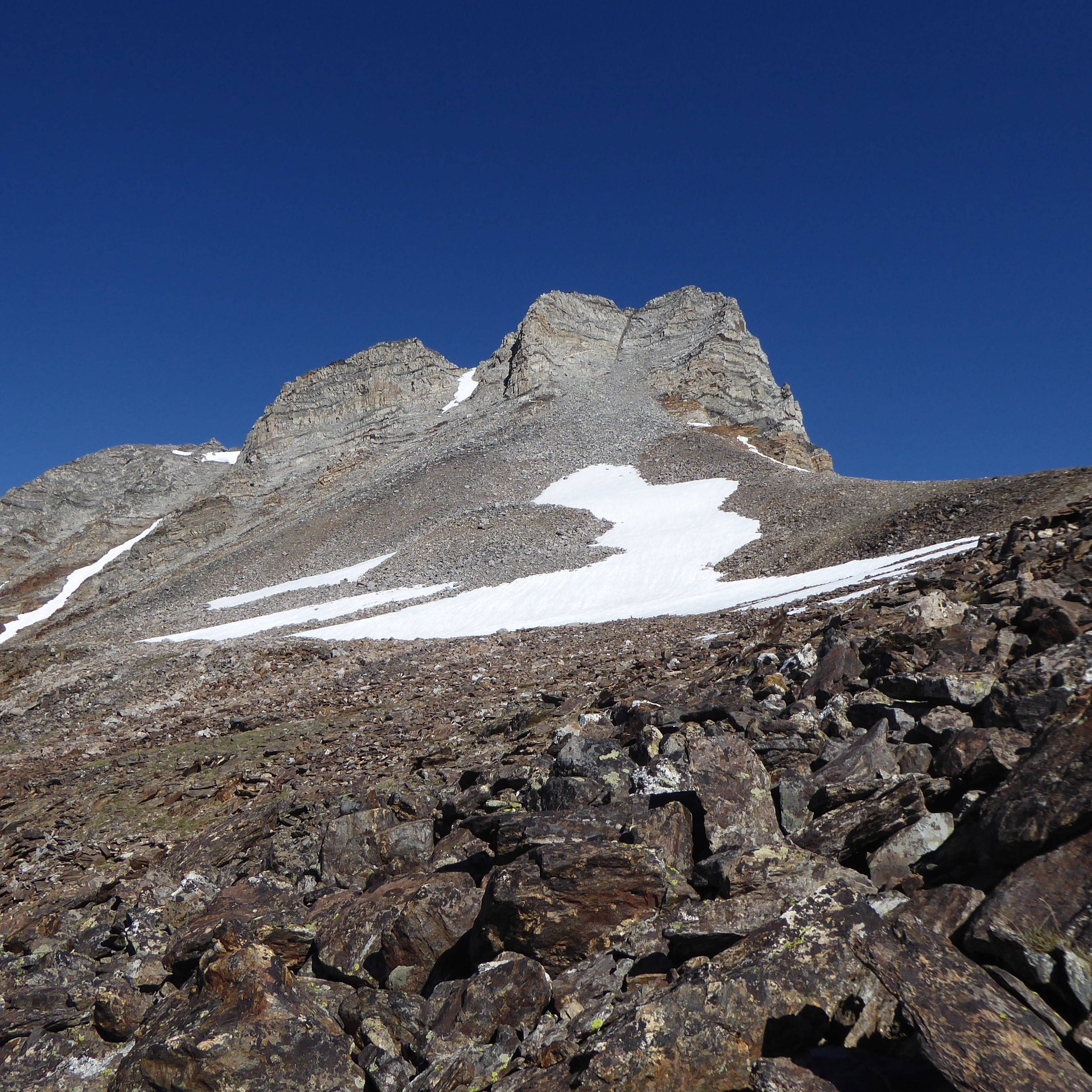 Old Hyndman Peak is 11775 feet high and right next to Hyndman (which I did last year) and Cobb (which I might try sometime if I really enjoy pain and suffering). The 3 peaks in the Pioneers are called the Triumvirate (they might only be called that if you do all 3 on the same day, but I'm ok calling them that any time). Doing all 3 in one days would be tough. I'm just fine doing one at a time. Old Hyndman starts at the same trailhead as Hyndman and breaks off a few miles in. The Hyndman trail goes off to the left of Cobb and the Old Hyndman trail goes off to the right of Cobb. You then cross over a river where you will gets your shoes and socks wet if you don't bring anything to cross. Another few miles and then you go off-trail until the summit. It's close to 2700 feet in about 2 miles off-trail with loose rocks most of the way. Good stuff. This is the first 'real' mountain I've done this year because of the heavy snow over the winter. Will try to get more in between now and September. Trip was great although my legs were not happy after this one.
