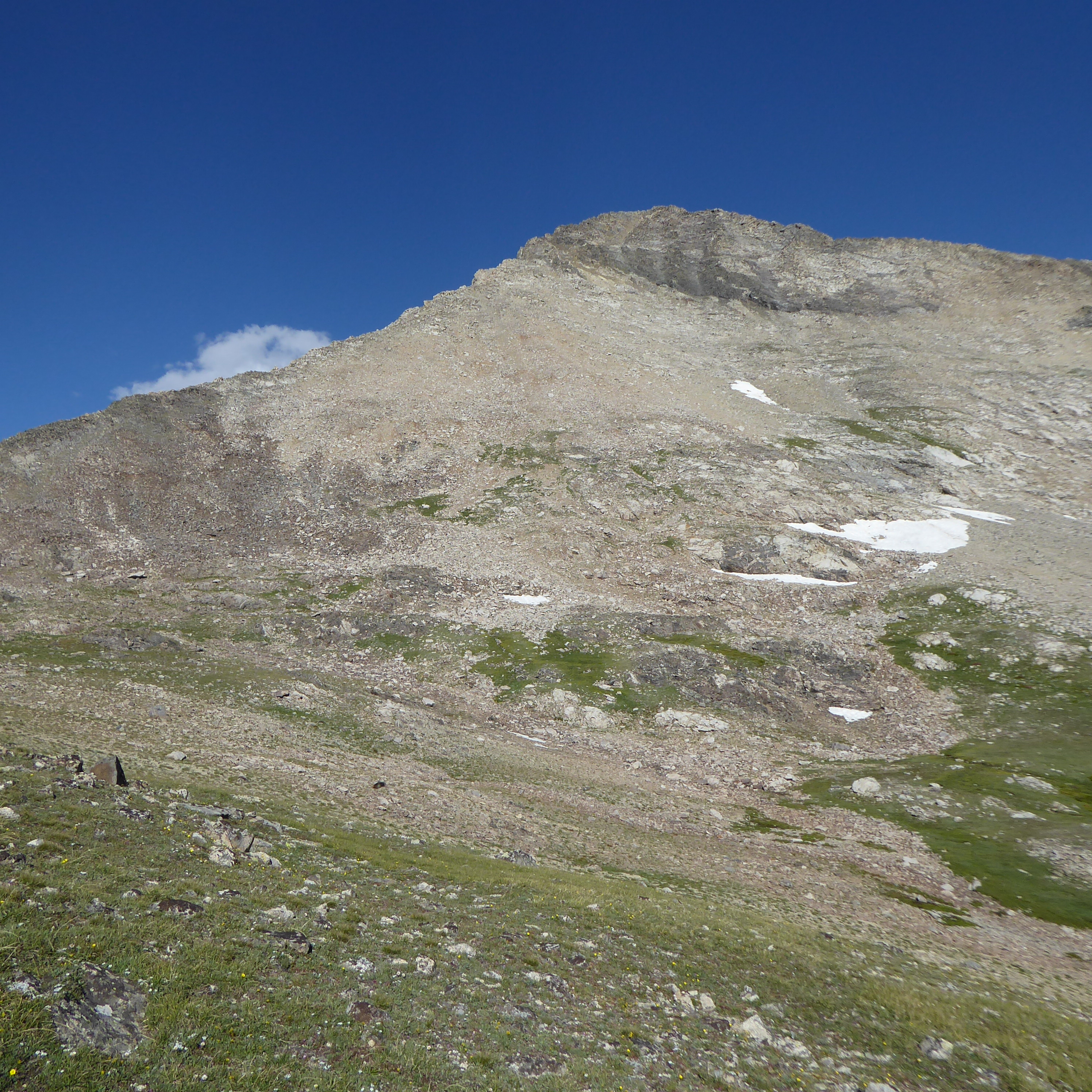Standhope Peak is 11,877 in the Pioneers. The trail to get to it is actually not bad and you can hike it in a loop from the trailhead. The trails are named Broad Canyon and Jarvis. I went up Jarvis and down Broad Canyon. Not sure I can say which one is worse going up the canyon. Either way you will get to Standhope and the lakes just below it. Most people I think just do the loop or stay the night at the lakes, I don't think people go there to climb Standhope or the other 11er to the northeast, Altair. Getting up Standhope actually wasn't bad. I'd rate it between Hyndman and Leatherman (from the way I did it). Class 3 but not difficult. The area is pretty nice though, lots of camping in the canyons all around that area and lots of trails to hike on. It is a ways away though but the roads are ok for cars. All in all it was a nice hike and really nice views. From the top of Standhope you can see Borah, Leatherman and that range to the northeast, and Hyndman, Old Hyndman, and the rest of the Pioneers to the West.
