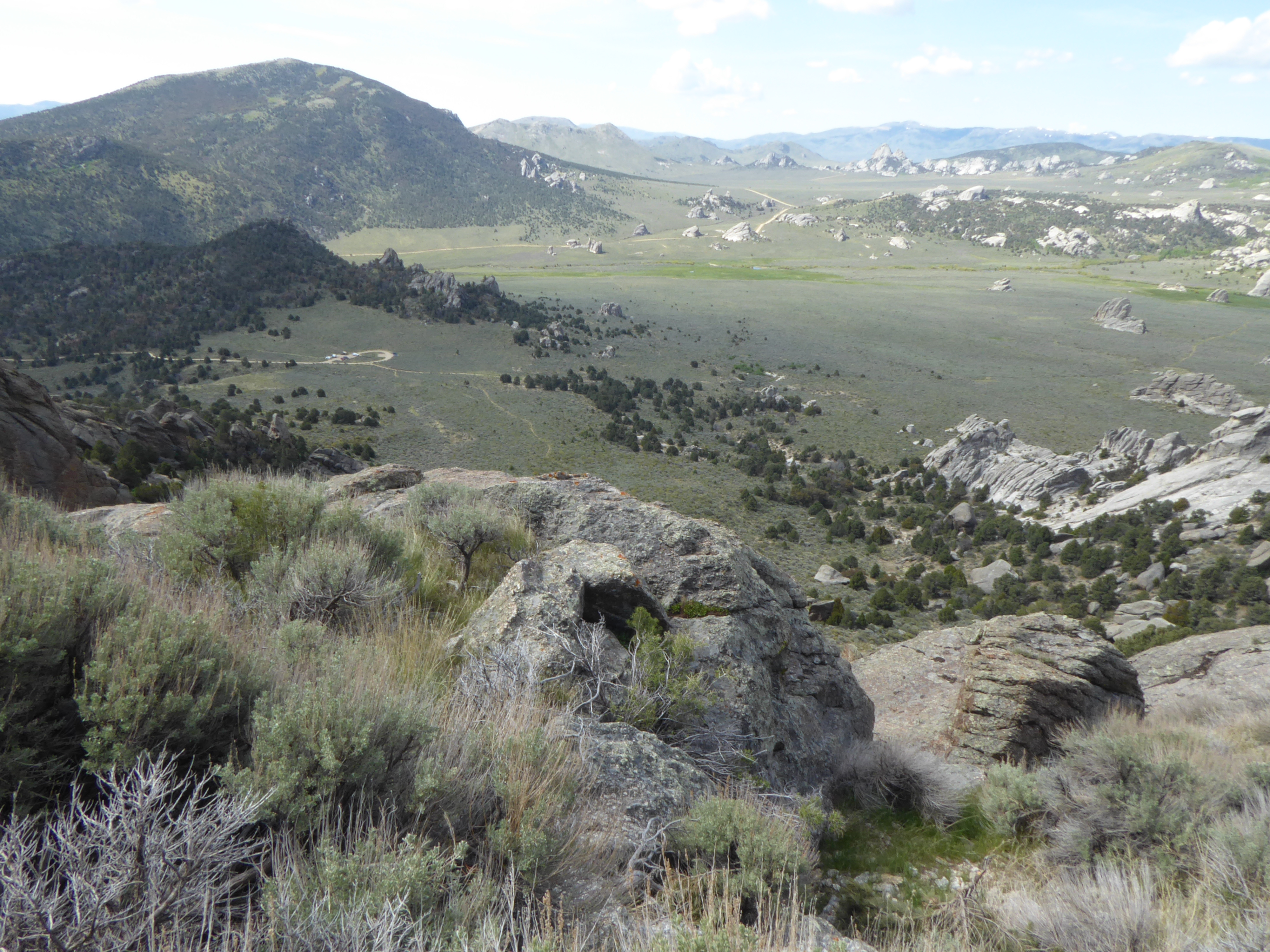 I attempted to hike up Black and Black Pine peaks but unfortunately the road was blocked on the western approach road by barbed wire. No idea if the way up is just blocked off now or maybe it just hasn't opened up yet for hiking. I'll probably try the hike later in the year and probably from the East side and see how it goes. That was fail number one for the day. Since I was sort of in the area and didn't want to just drive back home without doing anything at all, I decided to go to City of Rocks and see if there did indeed exist a trail along the northern side of CoR (along the Granite Peak ridge). I had seen one website at one point (which I never found again and never saw on any other sites) mention something about a ridge run or ridge trail. Although I didn't see anything in Google Earth I did see a trail going up to Steinfells Dome and I thought that if there was a trail going around the northern side and following that ridgeline to the west following granite peak and going all the way over to the Indian Grove trail, that would be the starting point. The trail up to Steinfells Dome was steep but short, and there was no trail after getting to the dome. I went off trail for a short time while the terrain was not too bad, but it turned more rocky and steep with thick low trees that made going tough. Since I had no real reason to push on as there obviously was no trail and it would be very difficult and probably take most of the day, I turned around and went back to the dome and down to the car. It took about 1hr 30min to go about 2.3 miles.